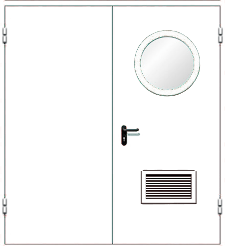 Дверь металлическая ДМ-2 с круглым окном и вентиляционной решеткой