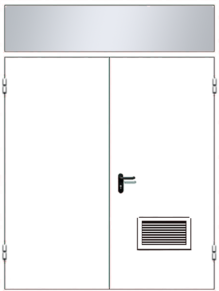 Дверь металлическая ДМ-2 с жалюзийной решеткой и фрамугой
